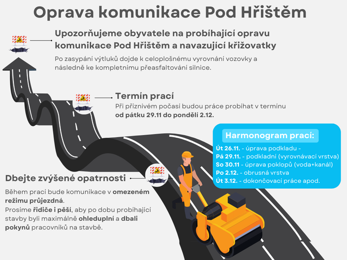 Informace k opravě komunikace Pod Hřištěm